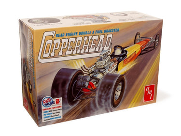 - FEATURE PACKED: Copperhead, an iconic kit from the kats at AMT! Fully paintable, with an expanded sheet of water-slide decals loaded with colorful options. Features include dragster wire wheels, axle-mounted front “airfoil” stabilizer, fuel-injected supercharged engine, wide-rim American mag wheels, giant Goodyear slicks, a one-piece body and more. Wrapped up nicely in eye-popping vintage-styled packaging!
