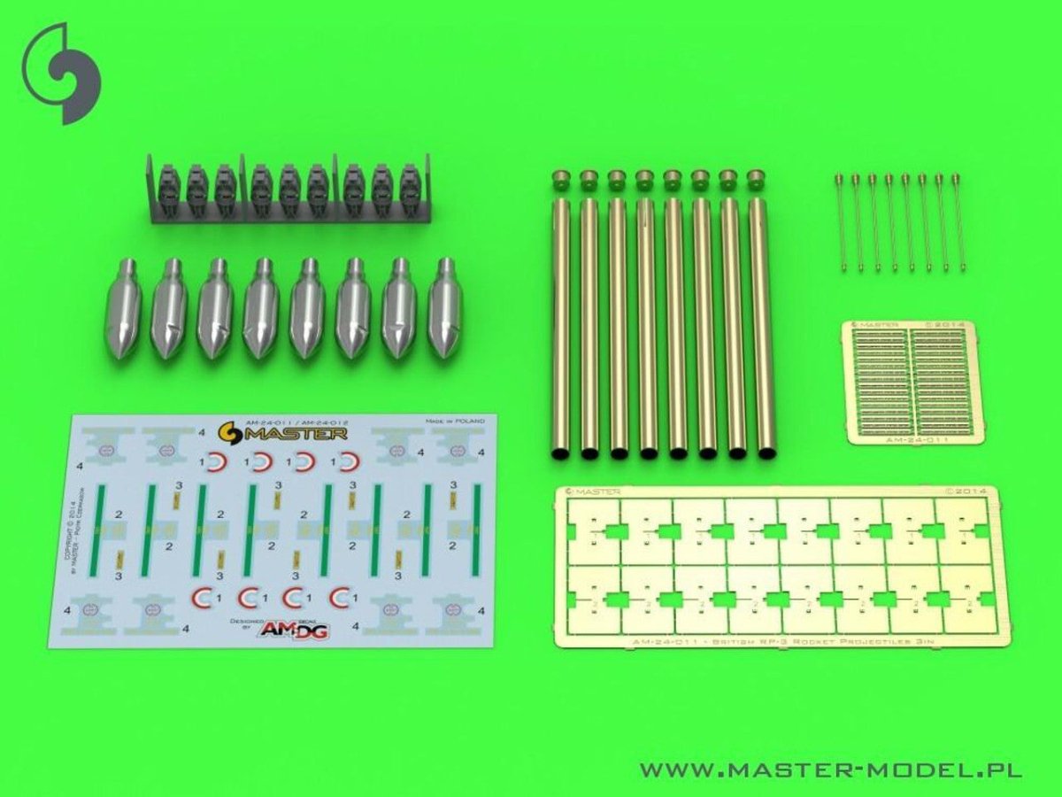 Master Model 1/24 Master Model British 3in Rocket RP-3 with 60LB SAP heads (8pcs) for early Mk I rail used on Typhoon Mosquito Beaufighter Hurricane etc.