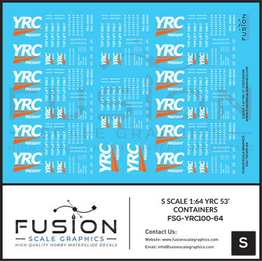 Home Fusion Scale Hobbies Online Hobby Shop 1:64 S Scale YRC Freight 53' Containers Decal Set