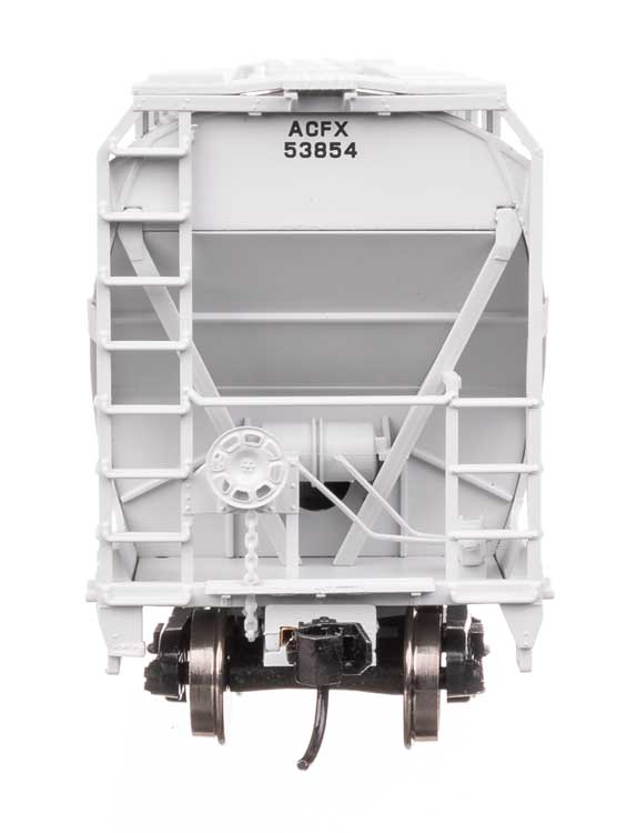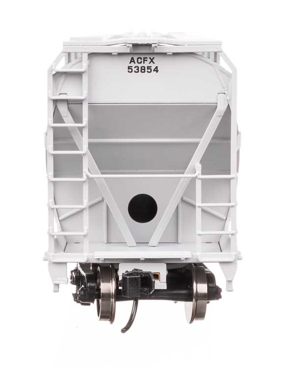 The 50' ACF 5250 Centerflow covered hopper hauled plastic pellets, grain and feed from the 1960s into the 2000s. Based on the American Car & Foundry 5,250 cubic foot capacity design, the models feature trough or round hatches and gravity or pneumatic gates as appropriate. These models feature:
