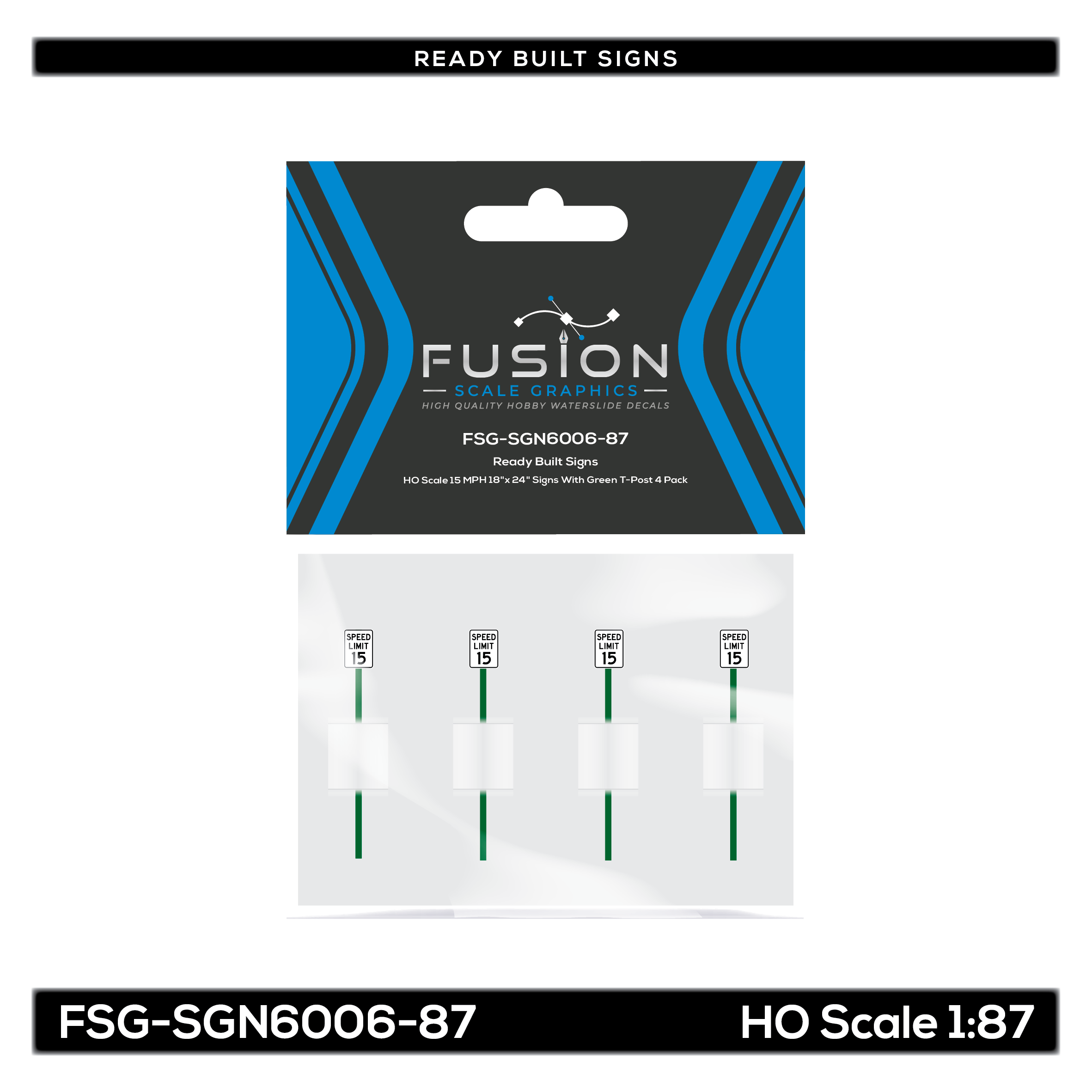 HO Scale 15 MPH 18"x 24" Signs With Green T-Post 4 Pack