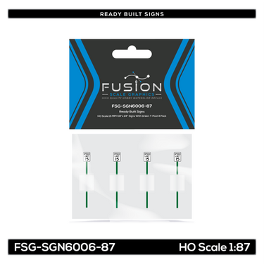 Transform your HO scale model railroad today with Fusion Scale Graphics ready-built street signs and experience the satisfaction of a true-to-life miniature environment. Explore our collection and discover how these meticulously crafted signs can elevate your layout to new heights of realism and charm.