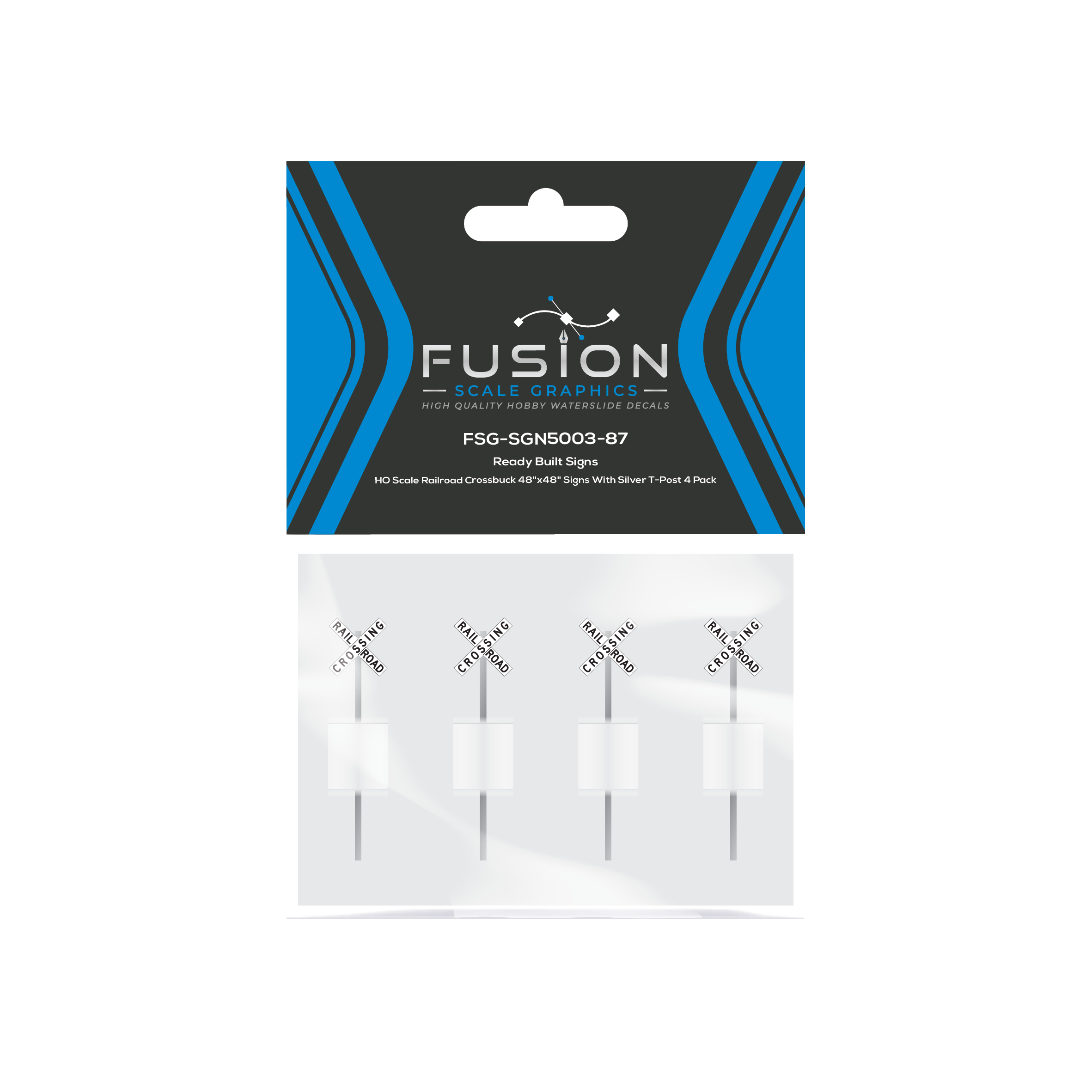 Home Fusion Scale Hobbies Online Hobby Shop HO Scale Railroad Crossbuck 48"x48" Signs With Silver T-Post 4 Pack