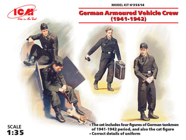 ICM Models 1/35 ICM German Armoured Vehicle Crew (1941-1942) (4 figures and cat)