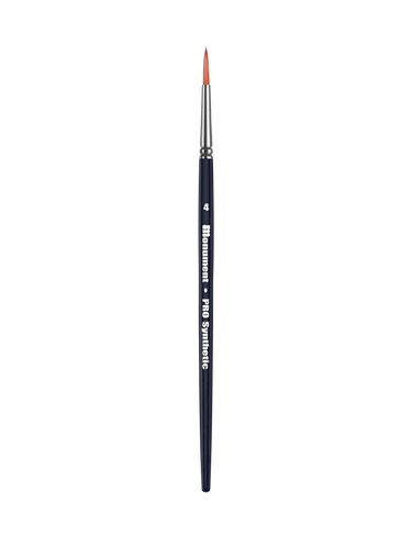 Monument has reinvented the synthetic brush! Our new PRO Synthetics mimic sable perfectly, delivering more "snap" than natural hair brushes, while maintaining great paint loading and control. All the feel and handling of a natural brush in a full synthetic. Great for everything from smooth blends and edge highlights to texturing and dotting those eyes. The ultimate brush for fine detailing and finishing.