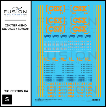 S Scale CSX EMD T4 SD70ACE SD70AH Locomotive Decal Set