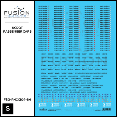 S Scale North Carolina DOT Passenger Cars Decal Set