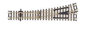 Atlas N Scale Custom Line Standard No. 4 Turnouts feature nickel-silver rail with molded black ties. They are designed to be used with the Atlas Under-Table Switch Machine (150-65) or a ground throw. Unlike the other turnouts which have shortened ties to allow for switch machine attachment, Custom Line Standard No. 4 Turnouts have full-length ties. A double-ended throwbar allows you to place your under-table switch machine on either side of the switch. This standard turnout includes one piece of 19" curved track which can be used to make a reverse curve off the diverging route to make adding a parallel siding easy. This turnout is part of the line of Atlas N Scale track.