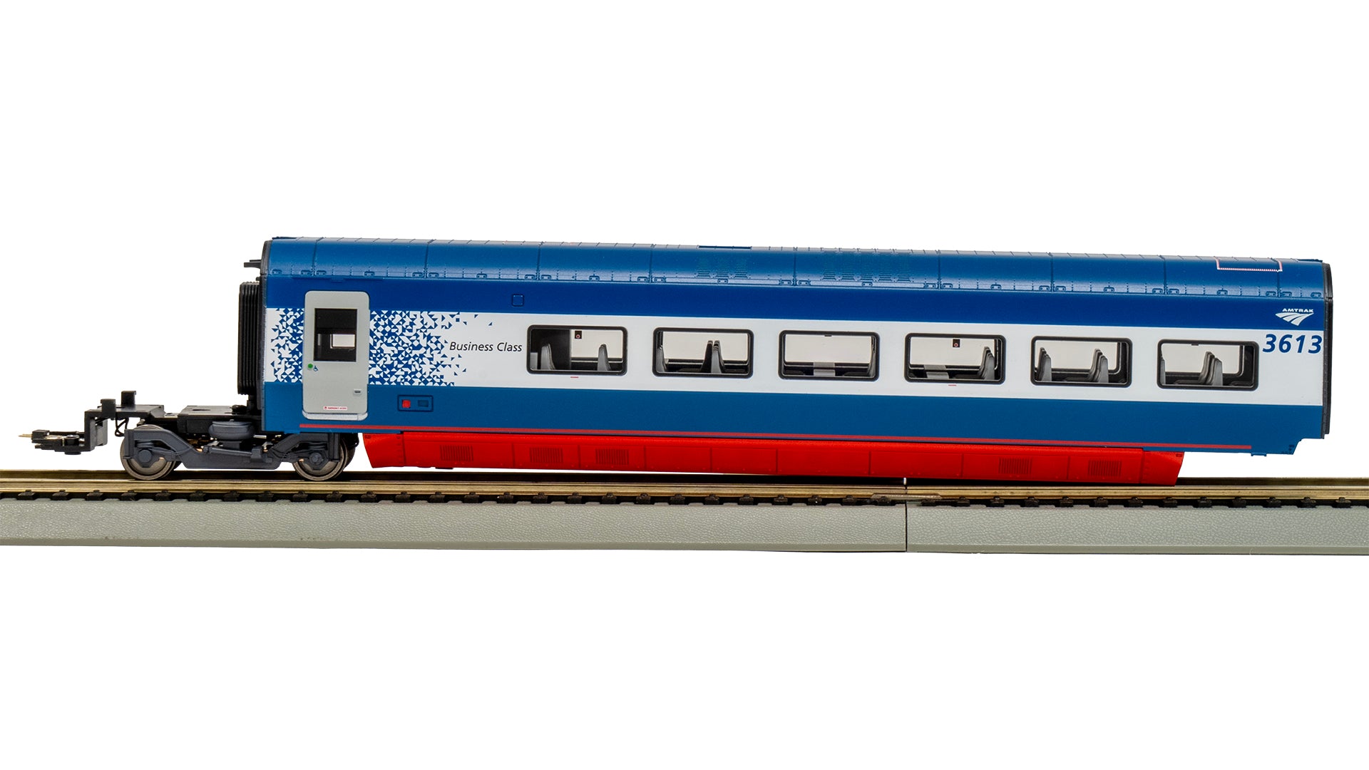 These add-on cars feature a unique articulated coupling system and are only compatible with other Acela® II cars. Use them to expand your #01206 Amtrak® Acela® II Train Set to a more prototypical length.