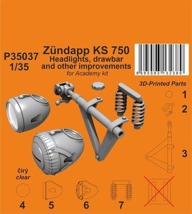 1/35 CMK Zundapp KS 750 Headlights, drawbar and other improvements / for Academy kit