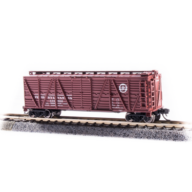| Stock cars were used to transport a variety of live animals, such as cattle, mules, horses, as well as hogs sheep and calves. Animal transport was and still is an important revenue stream for many railroads. BLIs K7A is a handsome reproduction of the Pennsylvania Railroad design. Our sound equipped stock cars are equipped with motion-operated on/off technology so that live stock noises can be heard when the train moves or is jostled. Just like in real life! So, if your pike has livestock to move, we have the means. Our sound stock cars have been a hit for many years in HO scale and now were bringing them to N scale for the first time! Order yours today.