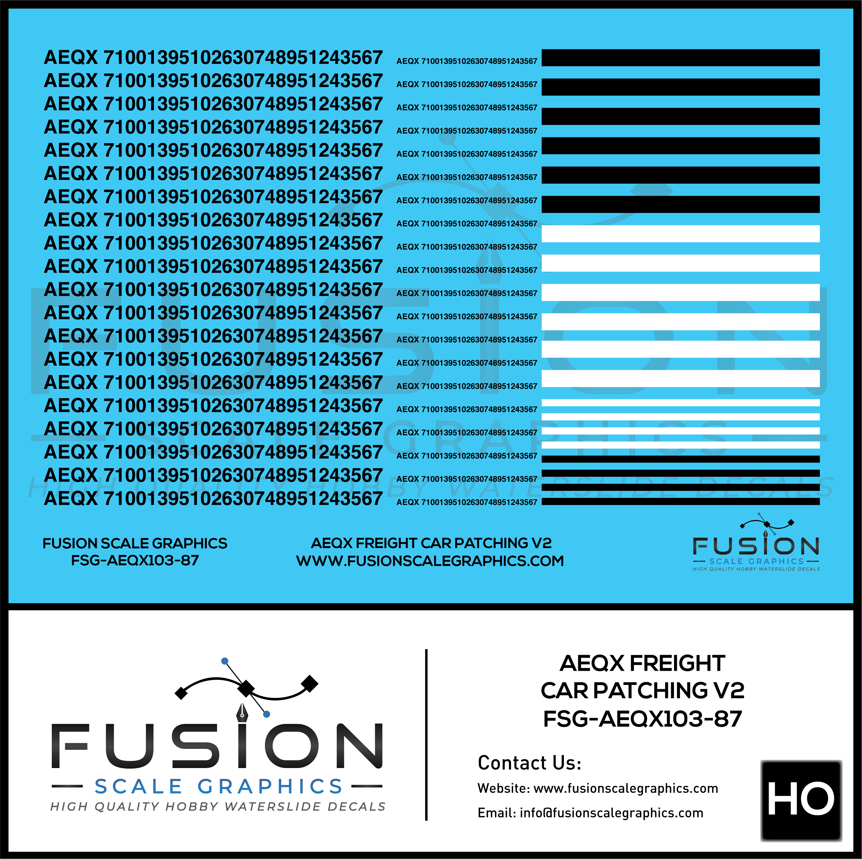 HO Scale AEQX Black Freight Car Patching Decal Set V2