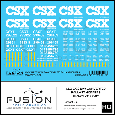 HO Scale CSXT / CSX Converted Ex 2 Bay Ballast Hoppers Decal Set