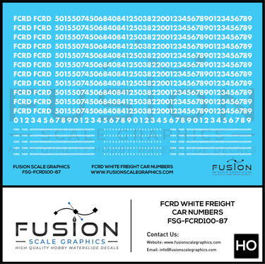 HO Scale First Coast FCRD White Freight Car Numbers Decal Set