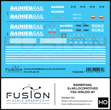 Home Shop Fusion Scale Graphics Decals HO Scale Rainier Rail Ex NS GP38-2 Locomotives Decal Set