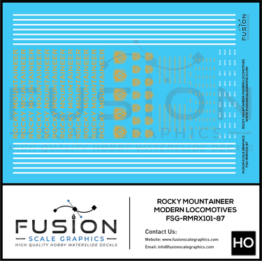 HO Scale Rocky Mountaineer Modern Locomotives Decal Set