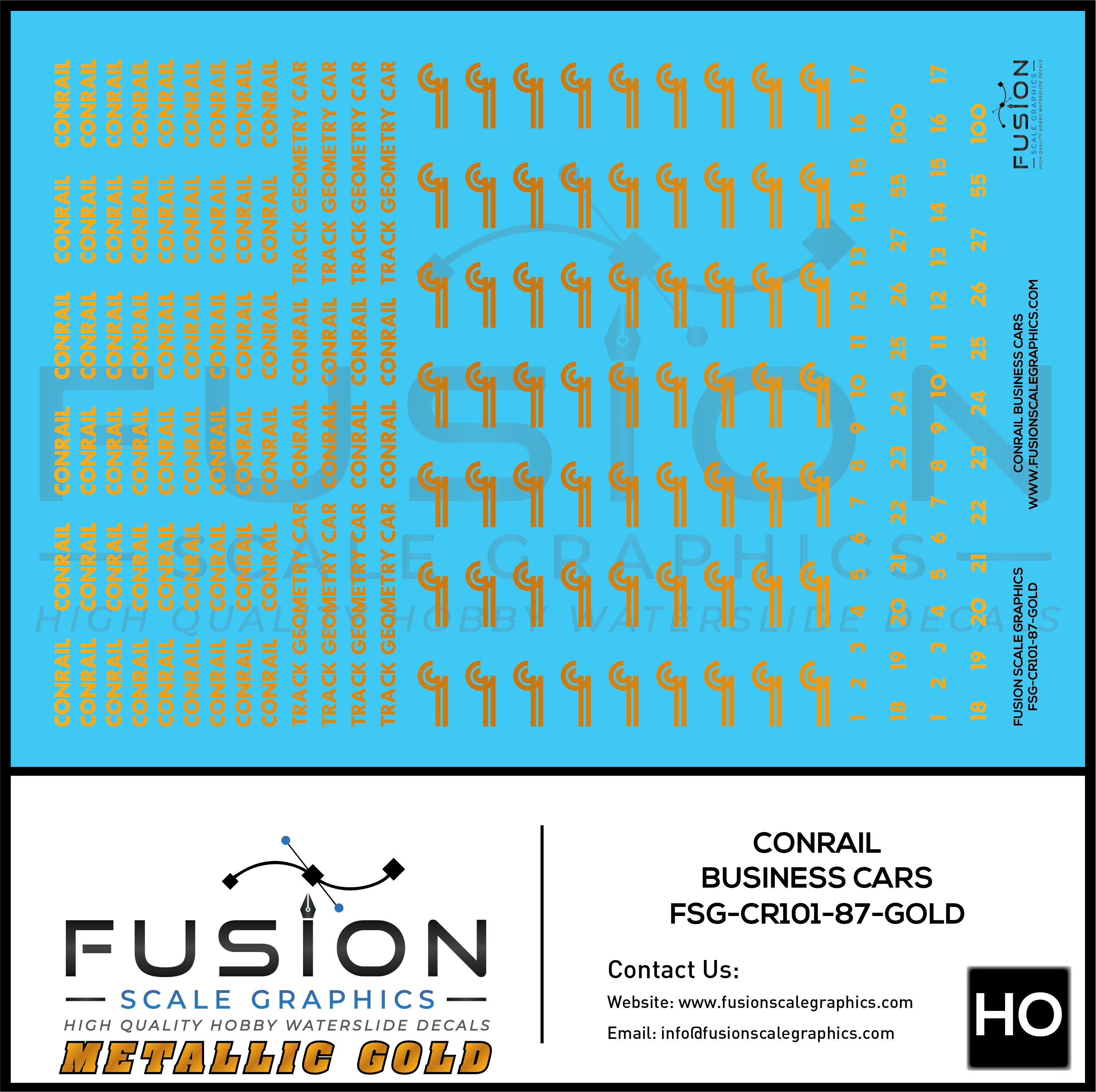 Home Shop Fusion Scale Graphics Decals Metallic Gold HO Scale Conrail Business Cars Decal Set