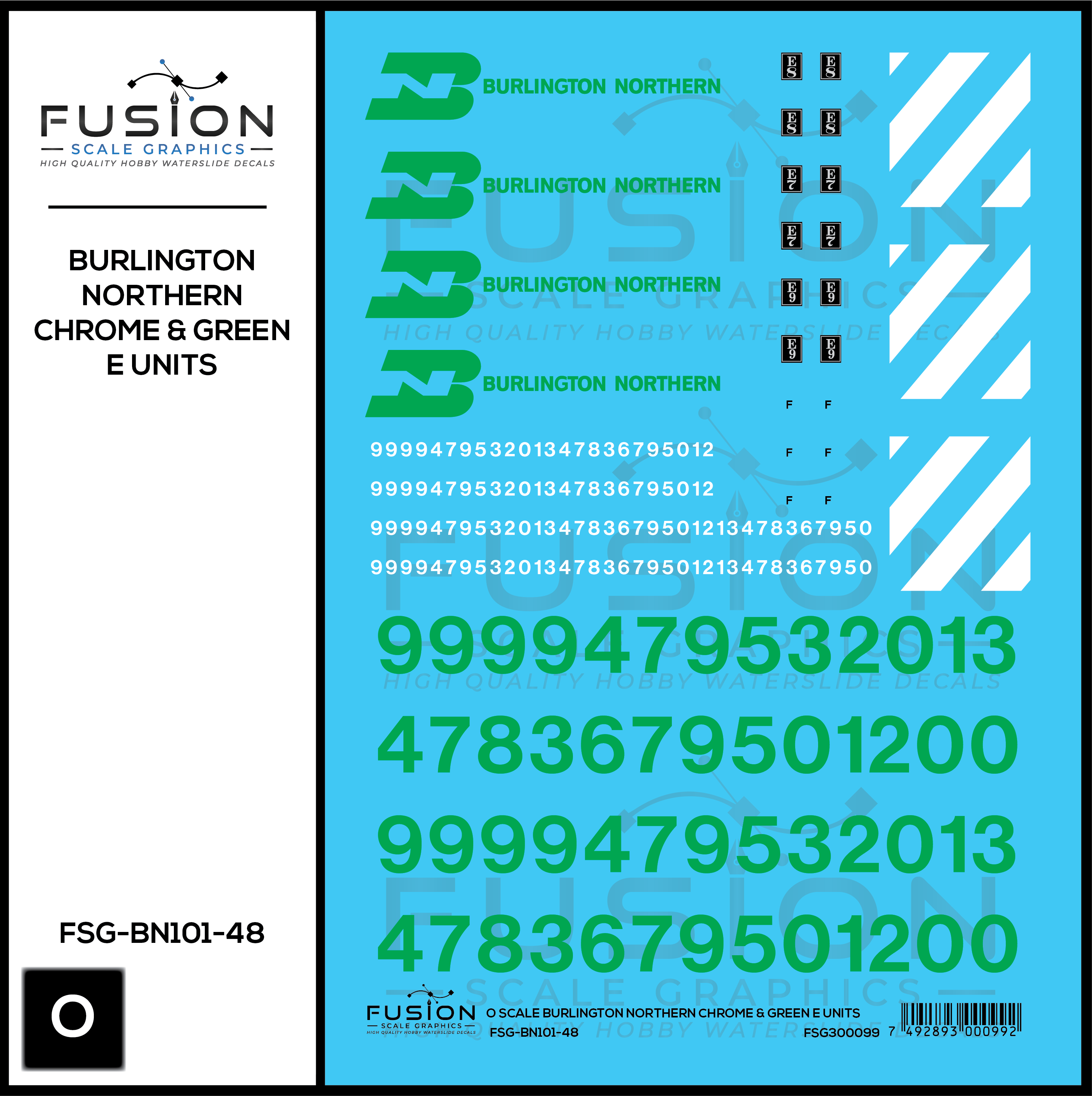 O Scale Burlington Northern Chrome & Green E Units Decal Set