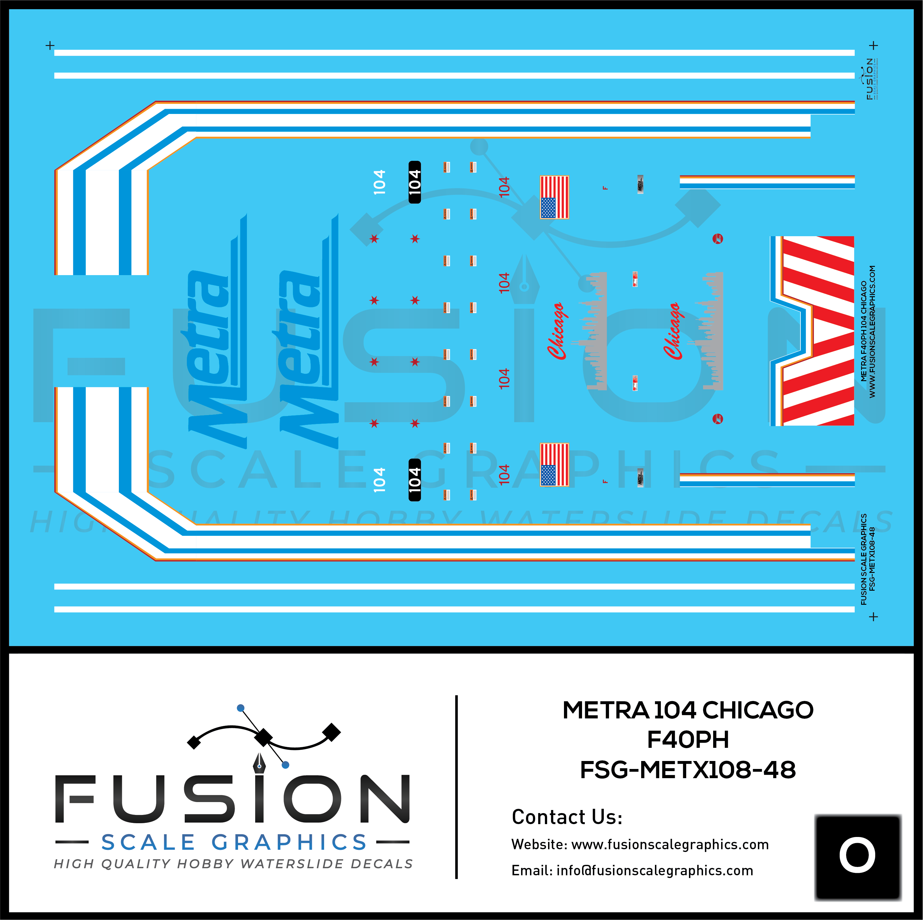 O Scale Metra 104 City of Chicago EMD F40PH Locomotive Decal Set
