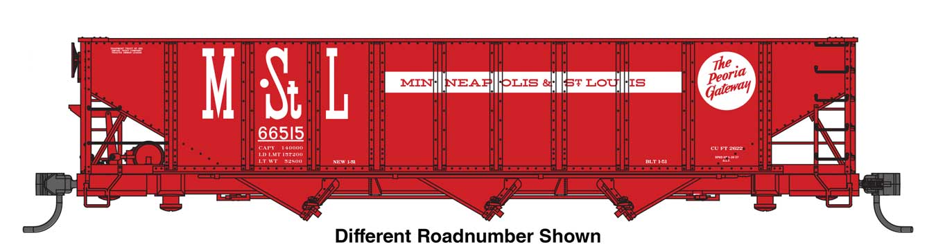 Walthers Mainline HO Scale Minneapolis & St. Louis #66743 70-Ton AAR 3-Bay Open Hopper