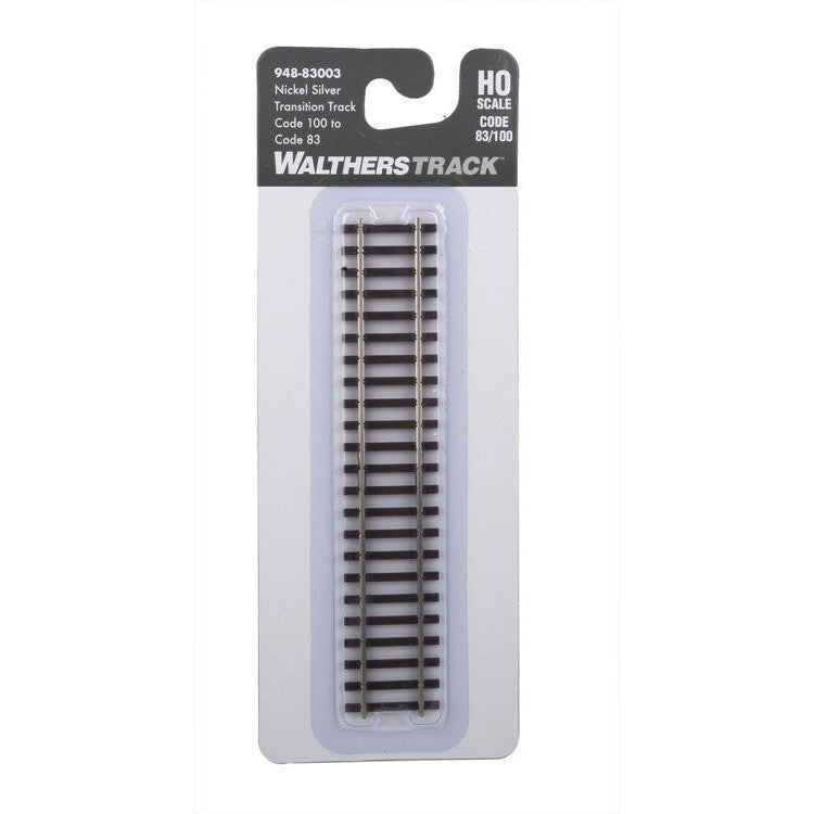 Add a realistic variety of track sizes to your HO Scale layout with this WalthersTrack accessory, that smooths the transition to and from different sizes of rail. Perfect for yards and sidings, it comes fully assembled with prealigned sections of both Code 83 and Code 100 rail and features:
