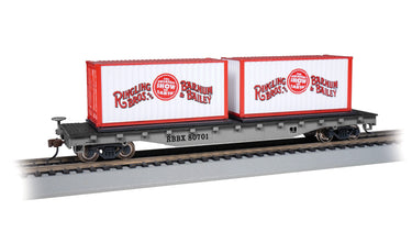 The circus is coming to town! Complementing Bachmann's Ringling Bros. and Barnum & Bailey™, Flatcars with Containers could be found behind the passenger portion of the modern-era circus train, carrying everything from props to equipment, and more. With the Bachmann Flatcar with Containers, you can continue to expand your modern-era Ringling Bros. and Barnum & Bailey™ Circus train to bring the excitement of the big top to your layout.