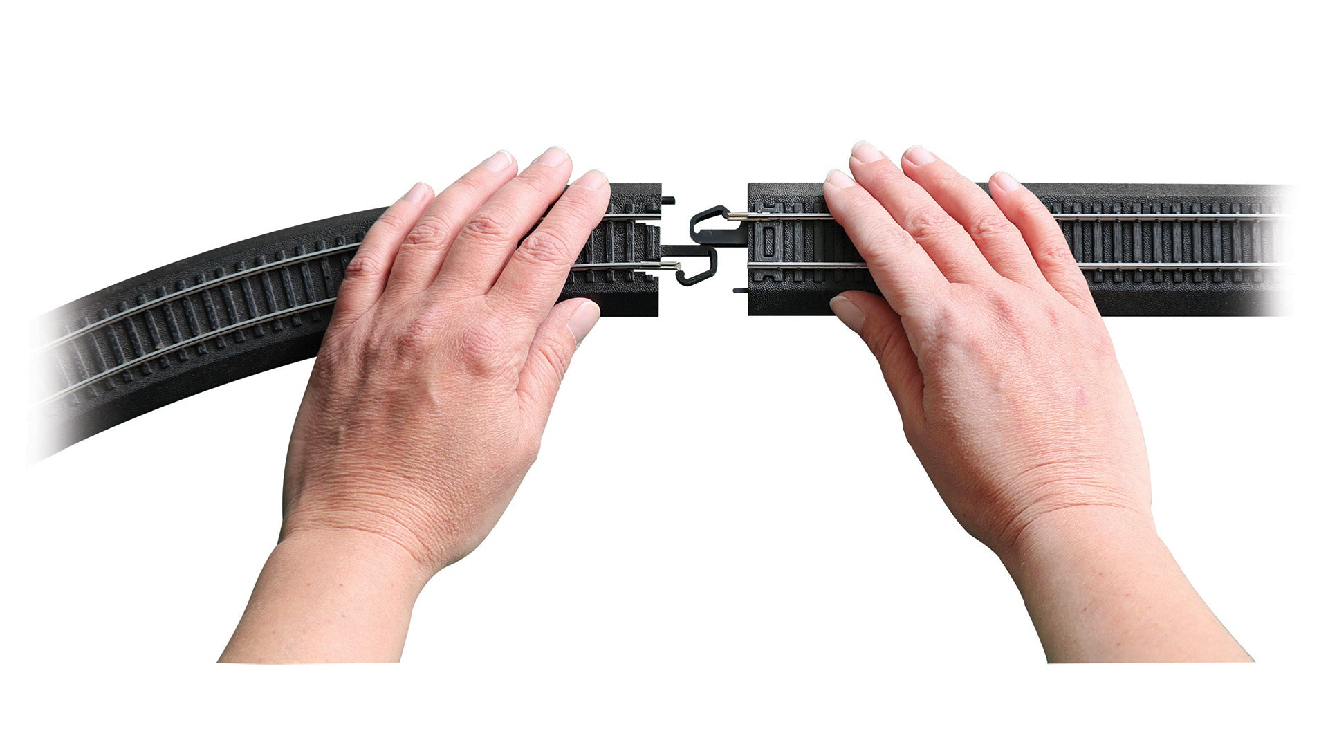 - 36" circle of snap-fit E-Z Track® including 11 pieces of 18" radius curved track and 1 curved plug-in terminal rerailer