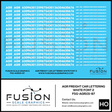 HO Scale AGR White Freight Car Lettering Decal Set