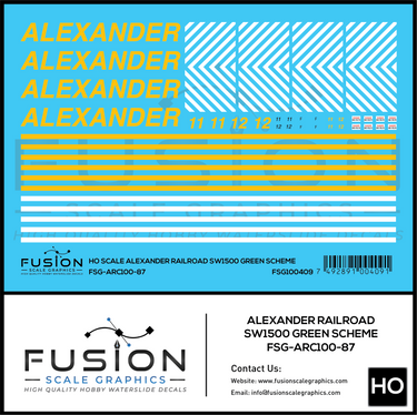 HO Scale Alexander Railroad SW1500 Green Scheme Locomotive Decal Set