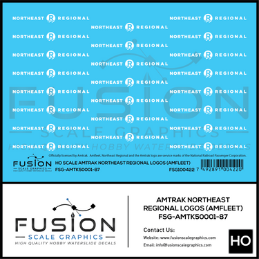 HO Scale Amtrak Northeast Regional Amfleet Logos Decal Set