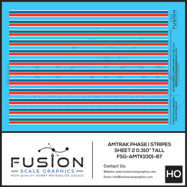 HO Scale Amtrak Phase I Stripes Sheet 2 0.310" Tall Decal Set
