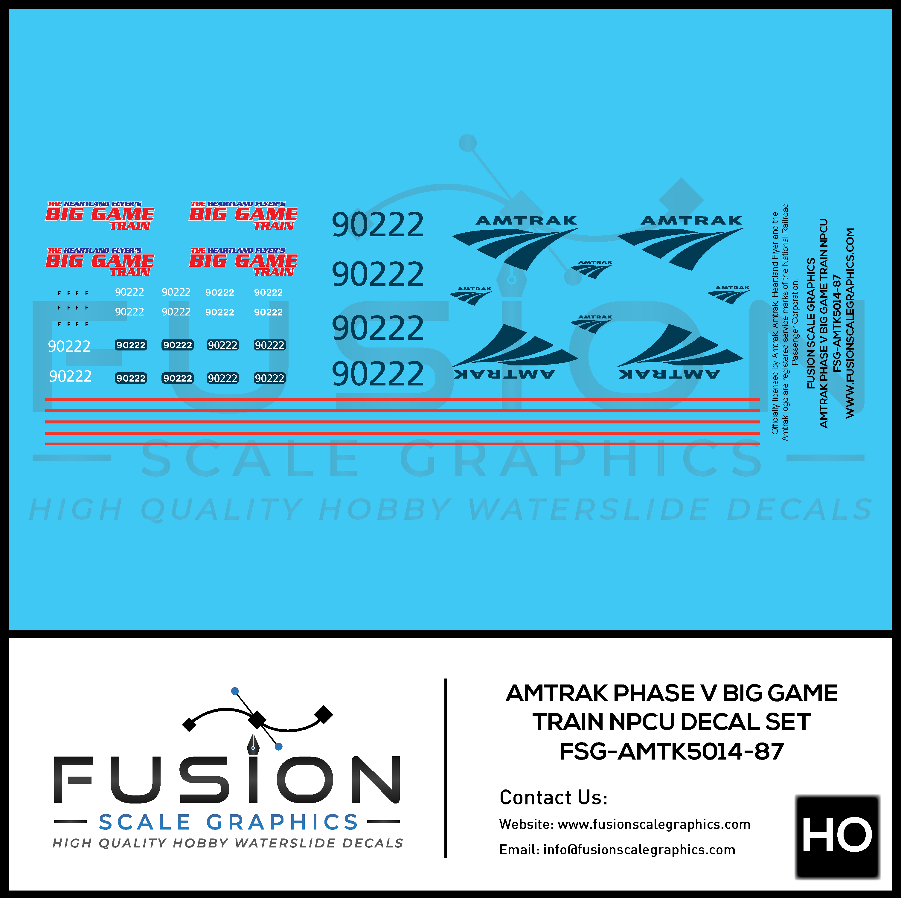 HO Scale Amtrak Phase V Big Game Train NPCU Decal Set
