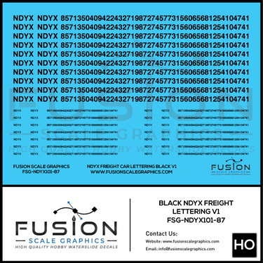 HO Scale Black NDYX Freight Car Lettering Decal Set