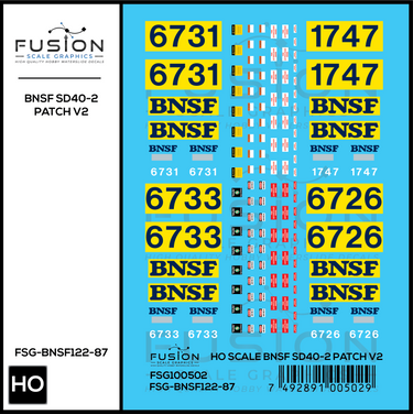 HO Scale BNSF Ex ATSF SD40-2 Patch Decal Set V2