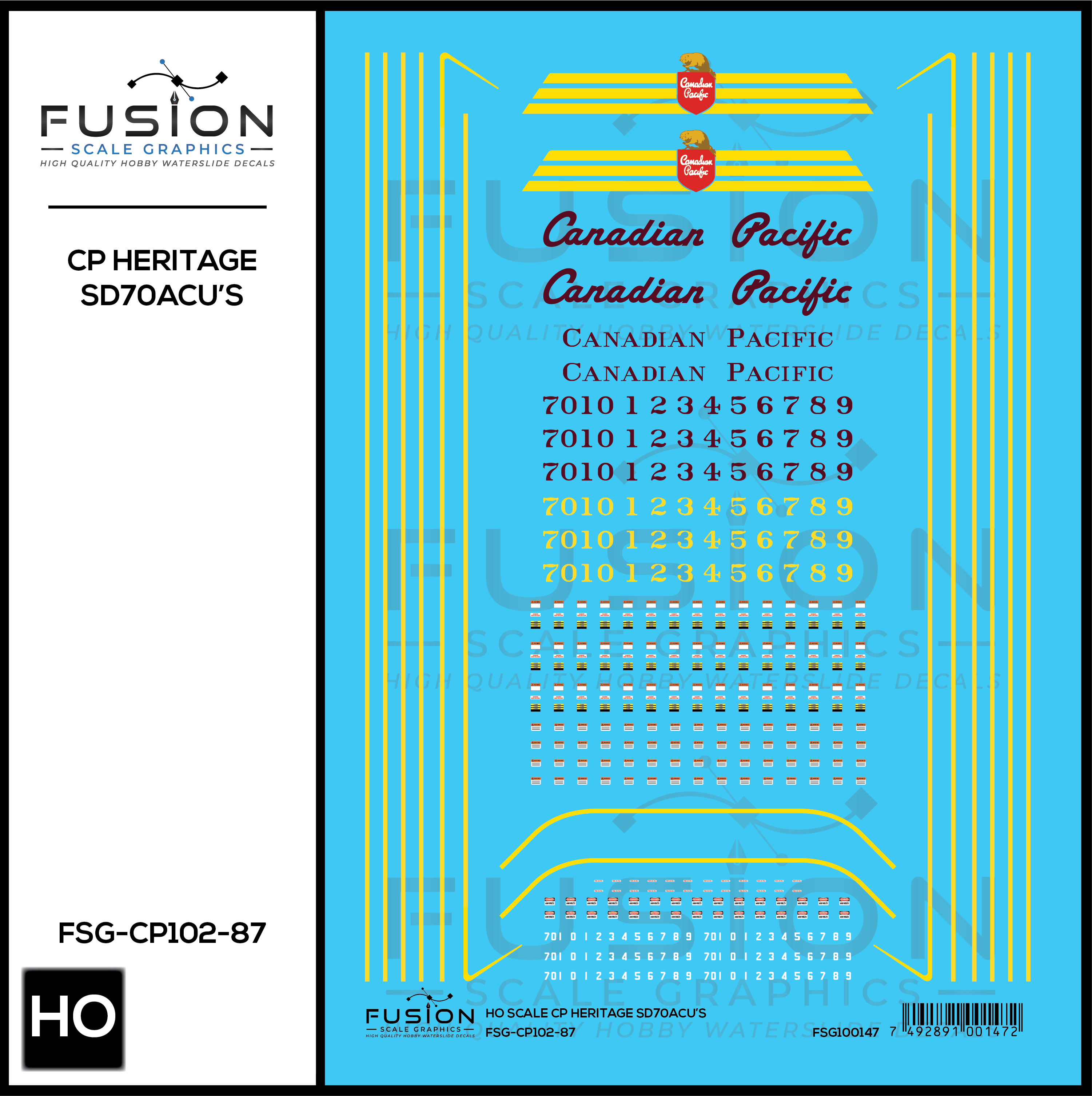 HO Scale Canadian Pacific Heritage SD70ACU Locomotives Decal Set