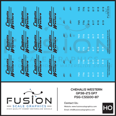 HO Scale Chehalis Western GP38-2 and GP7 Locomotive Decal Set