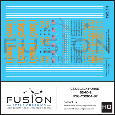 HO Scale CSX Black Hornet EMD SD40-2 Locomotive Decal Set