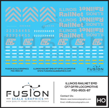 HO Scale Illinois Railnet EMD CF7 GP7R Locomotive Decal Set