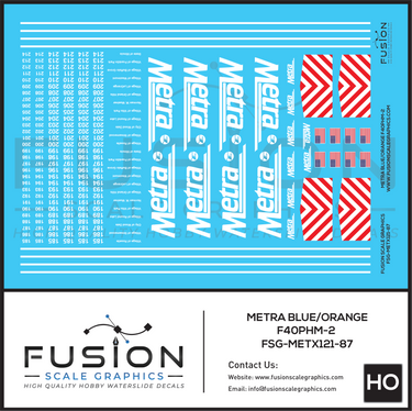 HO Scale Metra EMD F40PHM-2 Blue Locomotives Decal Set