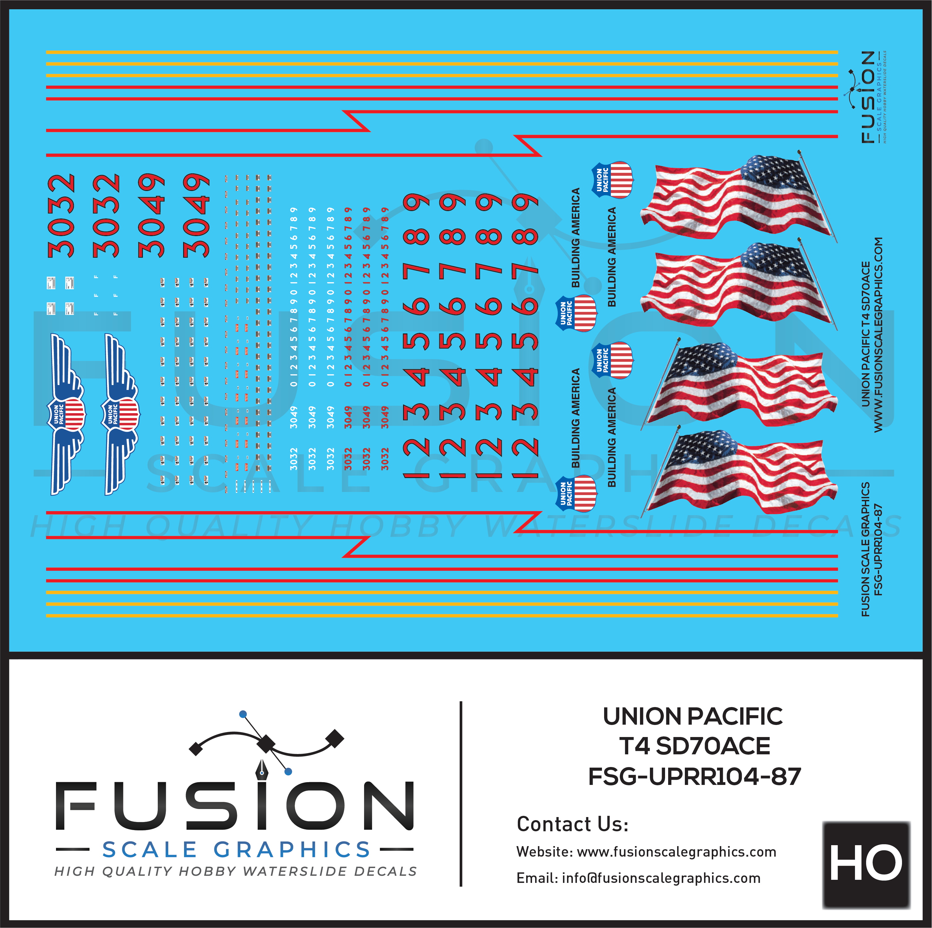 HO Scale Union Pacific EMD Tier 4 SD70ACE Locomotive Decal Set