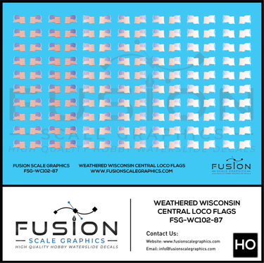 HO Scale Weathered Wisconsin Central Locomotive Flags Decal Set