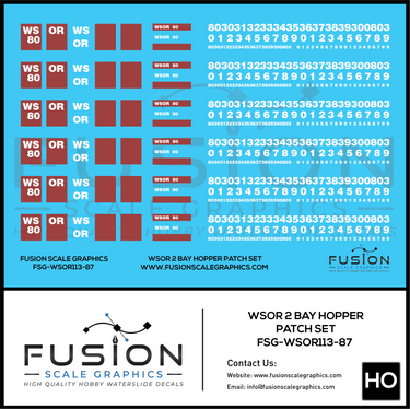Freight car patching set for WSOR 2 bay hoppers, sized for the Walthers Mainline HO scale freight cars.