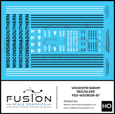 HO Scale Wisconsin & Southern WSOR EMD SD60M (ex UP) Locomotives Decal Set