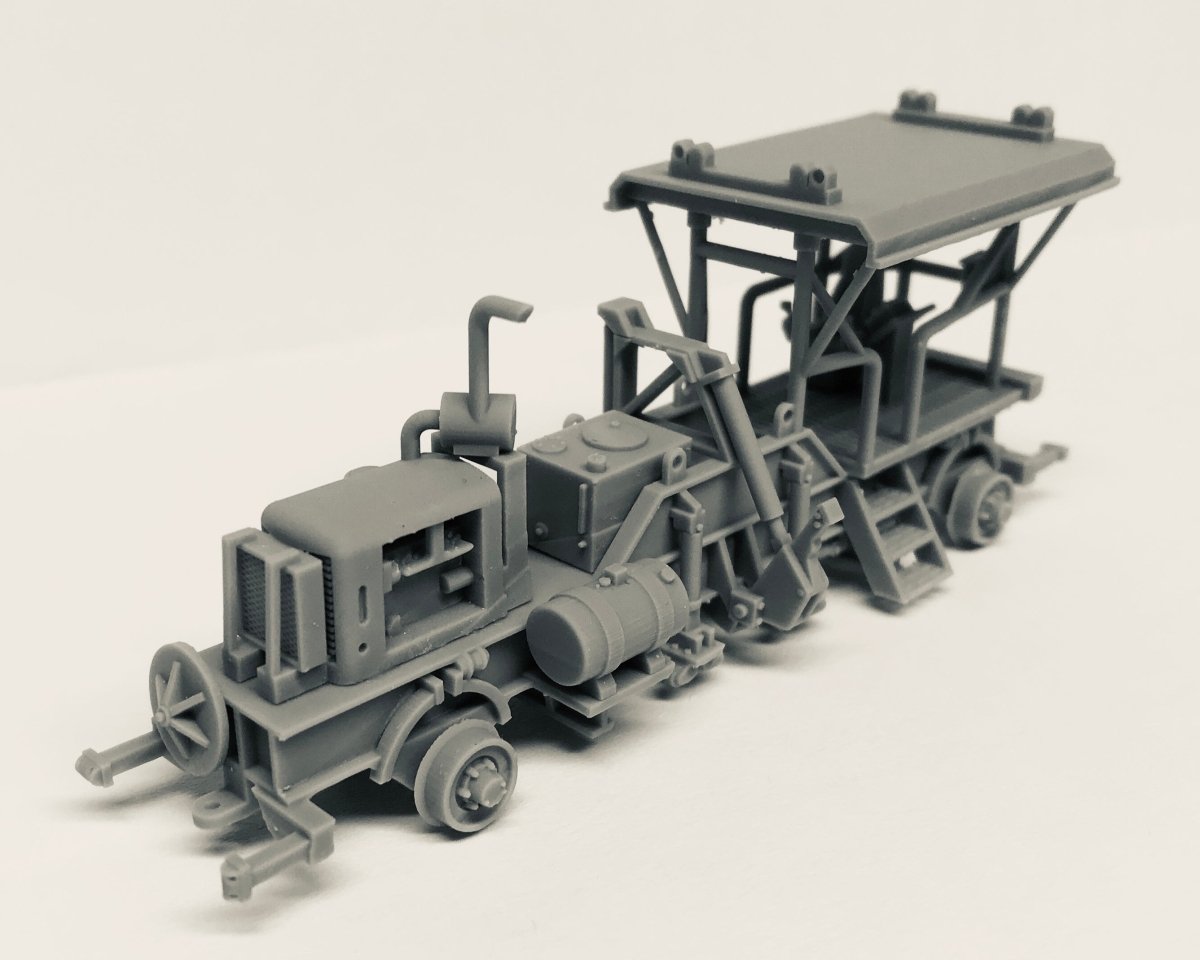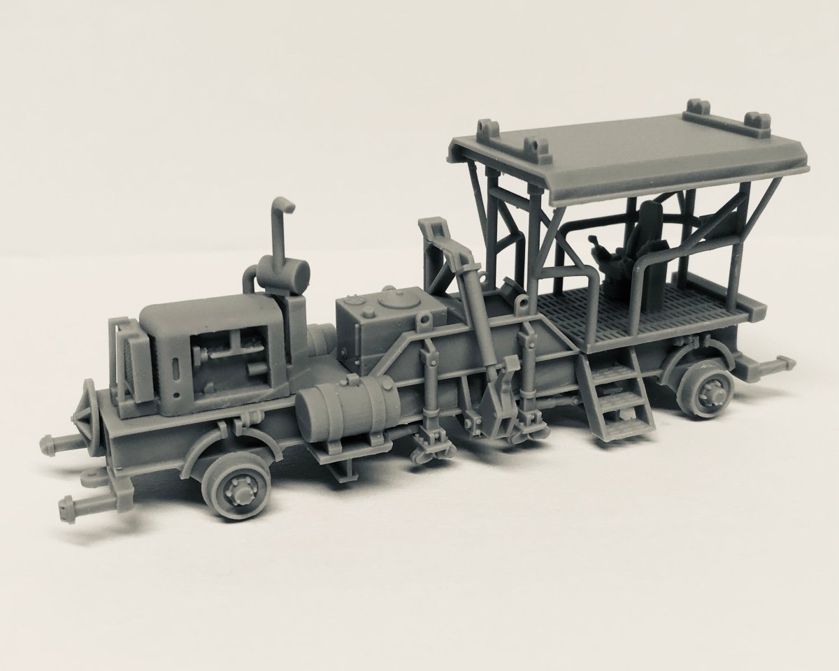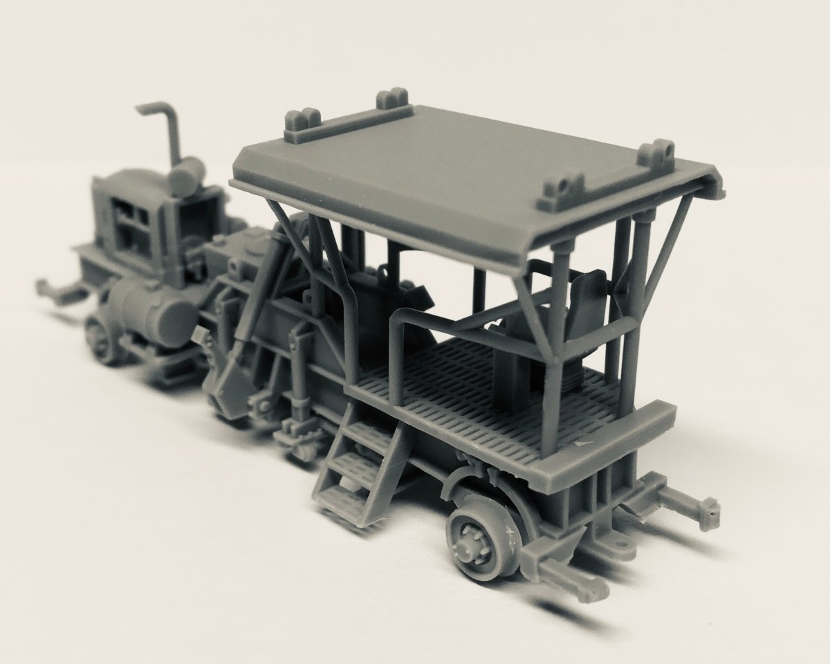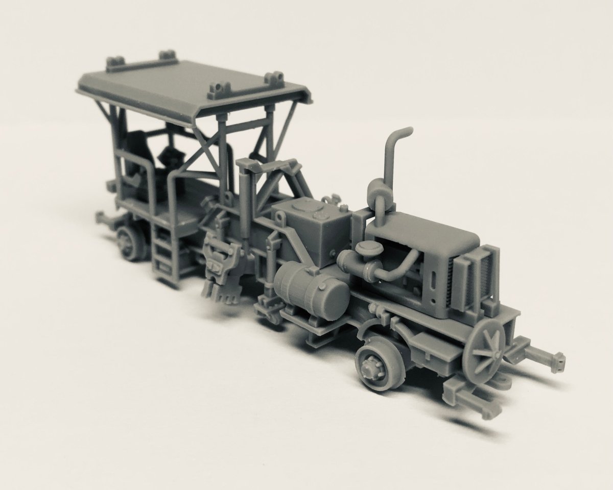 3D printed resin kit, includes main frame with deck detail, round hood engine housing assembly, wheels, and tanks.