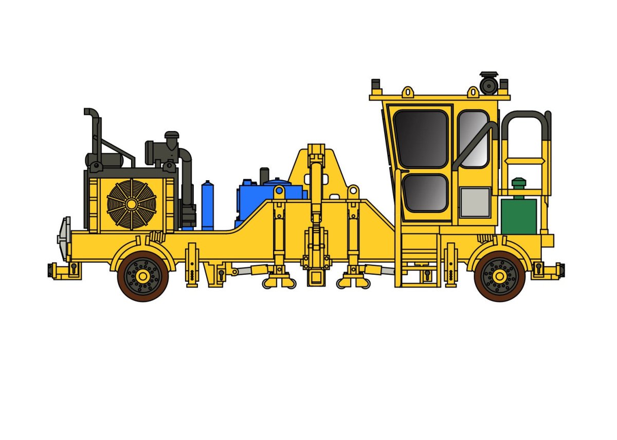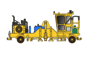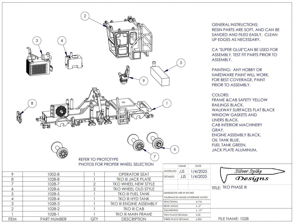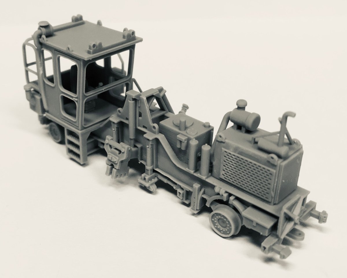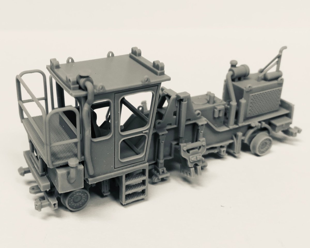 3D printed resin kit, includes main frame with deck detail, cab with upper deck, wheels, engine assembly, operator seat, and tanks.