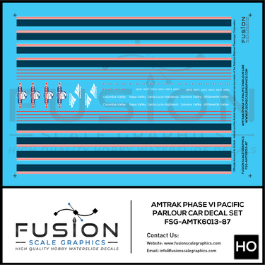 HO Scale Amtrak Phase VI Pacific Parlour Car Decal Set