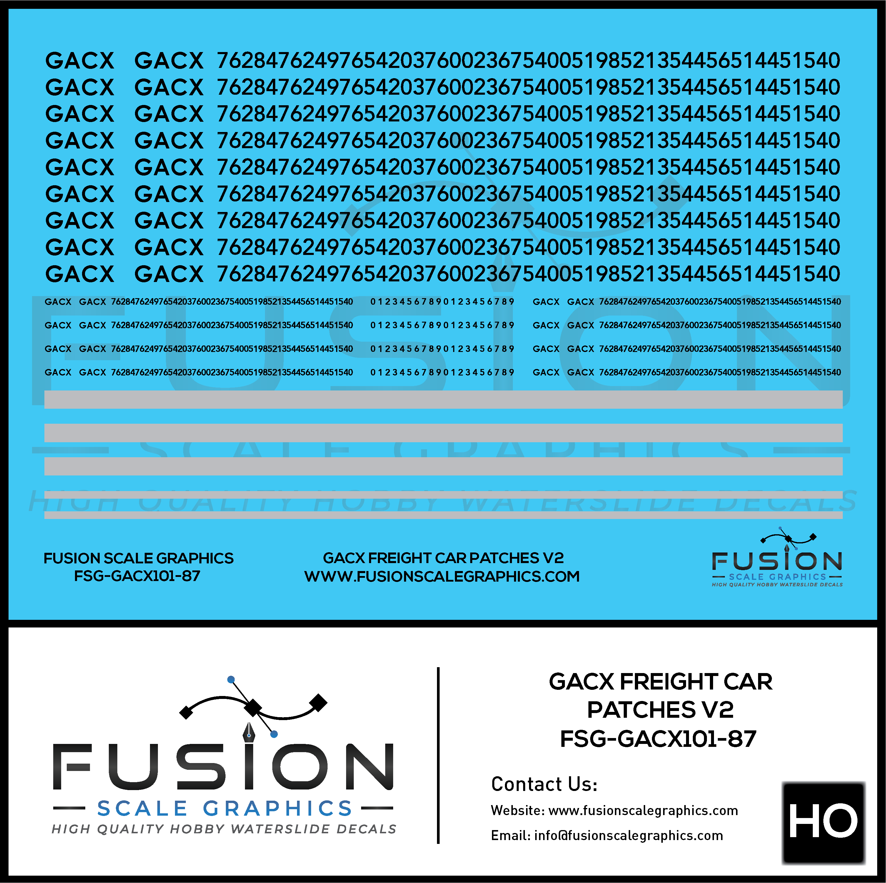 HO Scale GACX Freight Car Lettering Decal Set Font 2