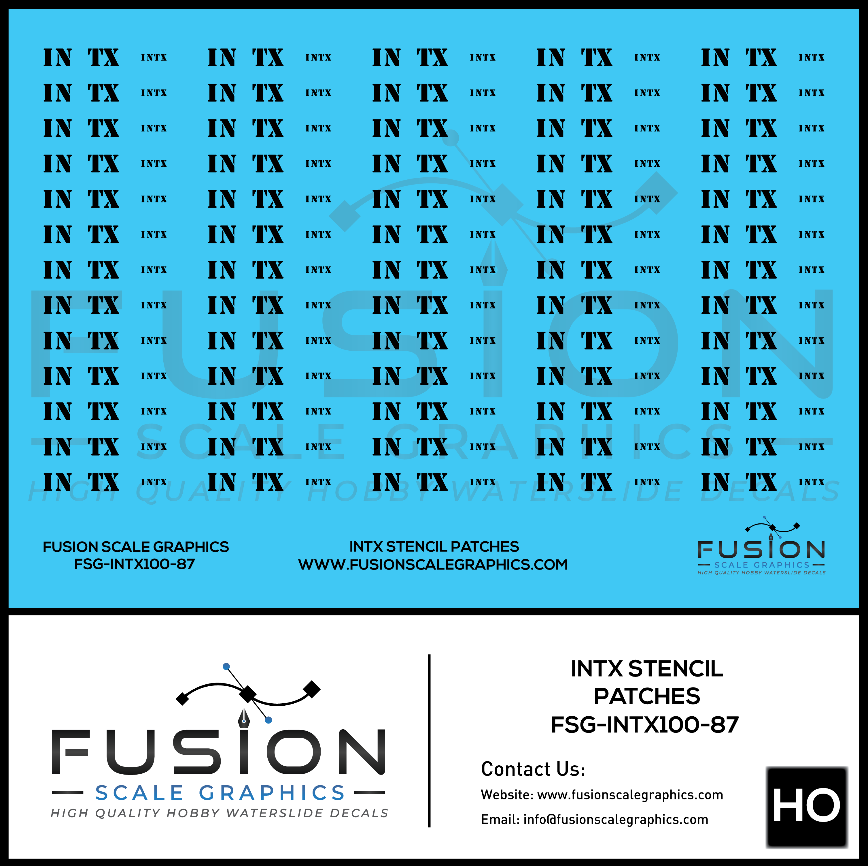 HO Scale INTX Black Roman Stencil Patching Decal Set