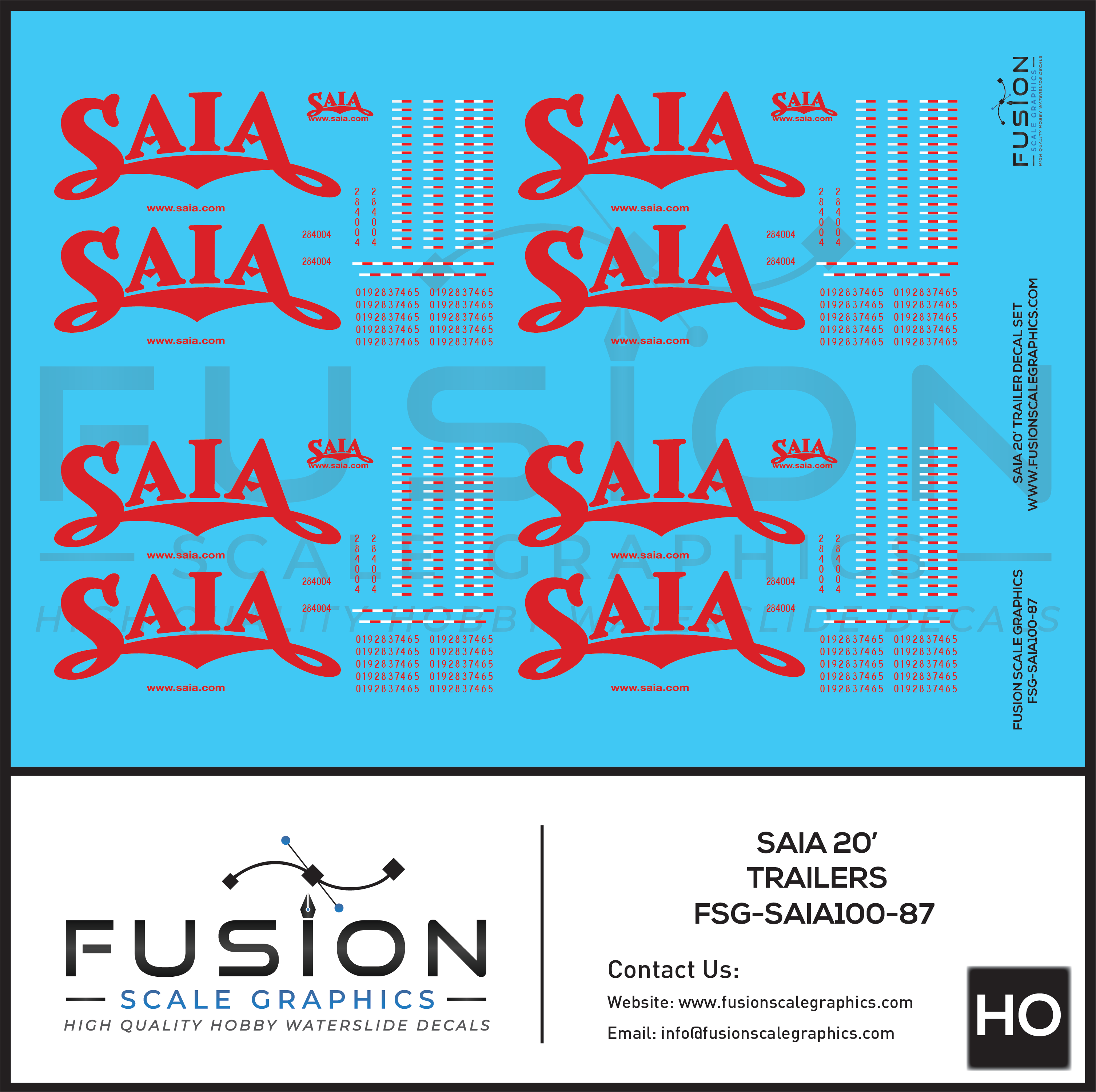 HO Scale Saia 20' Trailer Decal Set