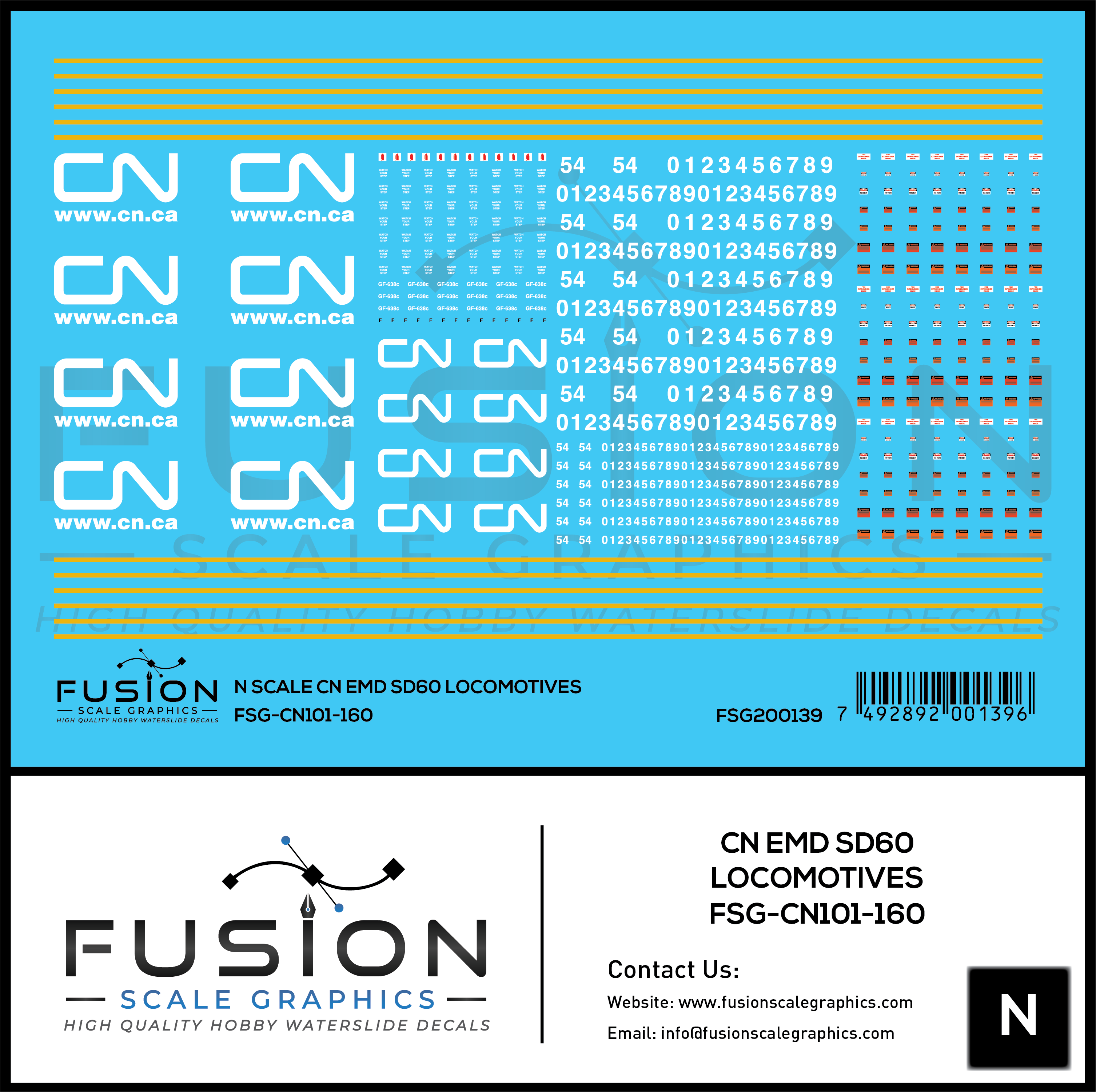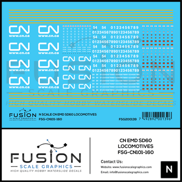 N Scale Canadian National EMD SD60 Locomotives Decal Set